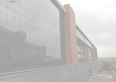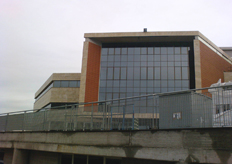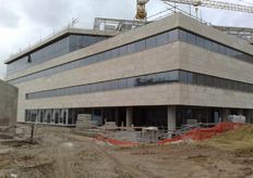 In risalto la grande facciata posata su carpenteria metallica alta circa 14 ml.