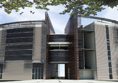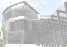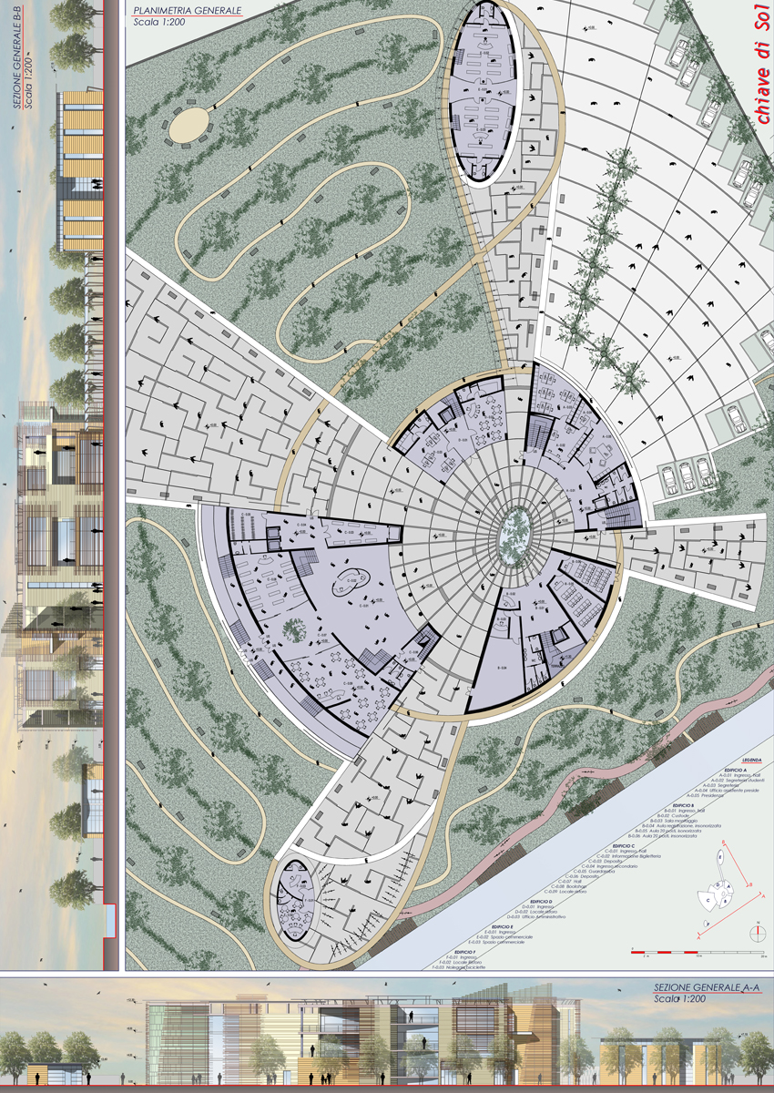 Rendering fotorealistici dell'interno dell'agorà, degli ingressi e del collegamento coperto. Per la presentazione del concorso, è stata curate grafica le piante, i prospetti, le sezioni e delle tavole finali per il concorso d'idee.