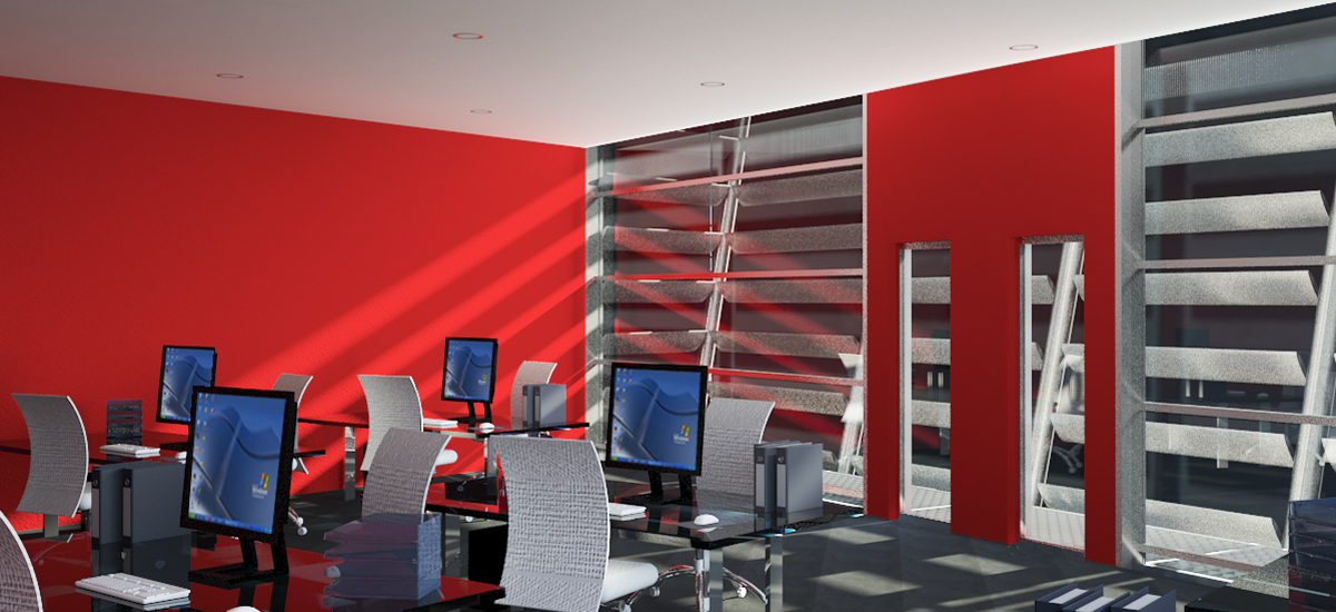 Rendering fotorealistici dell'interno degli uffici amministrativi dello studio Canuto.