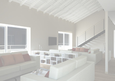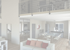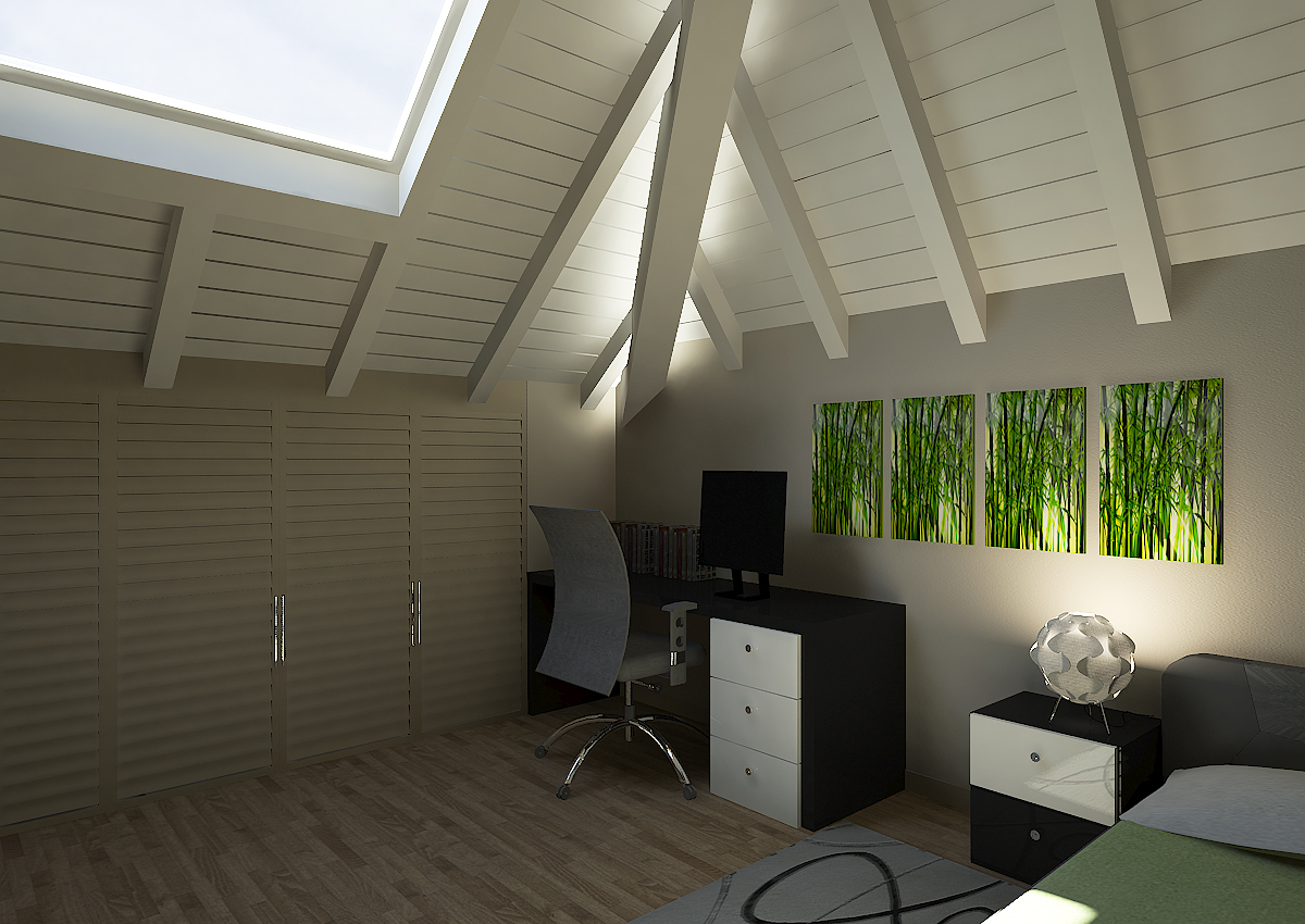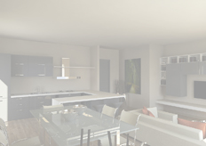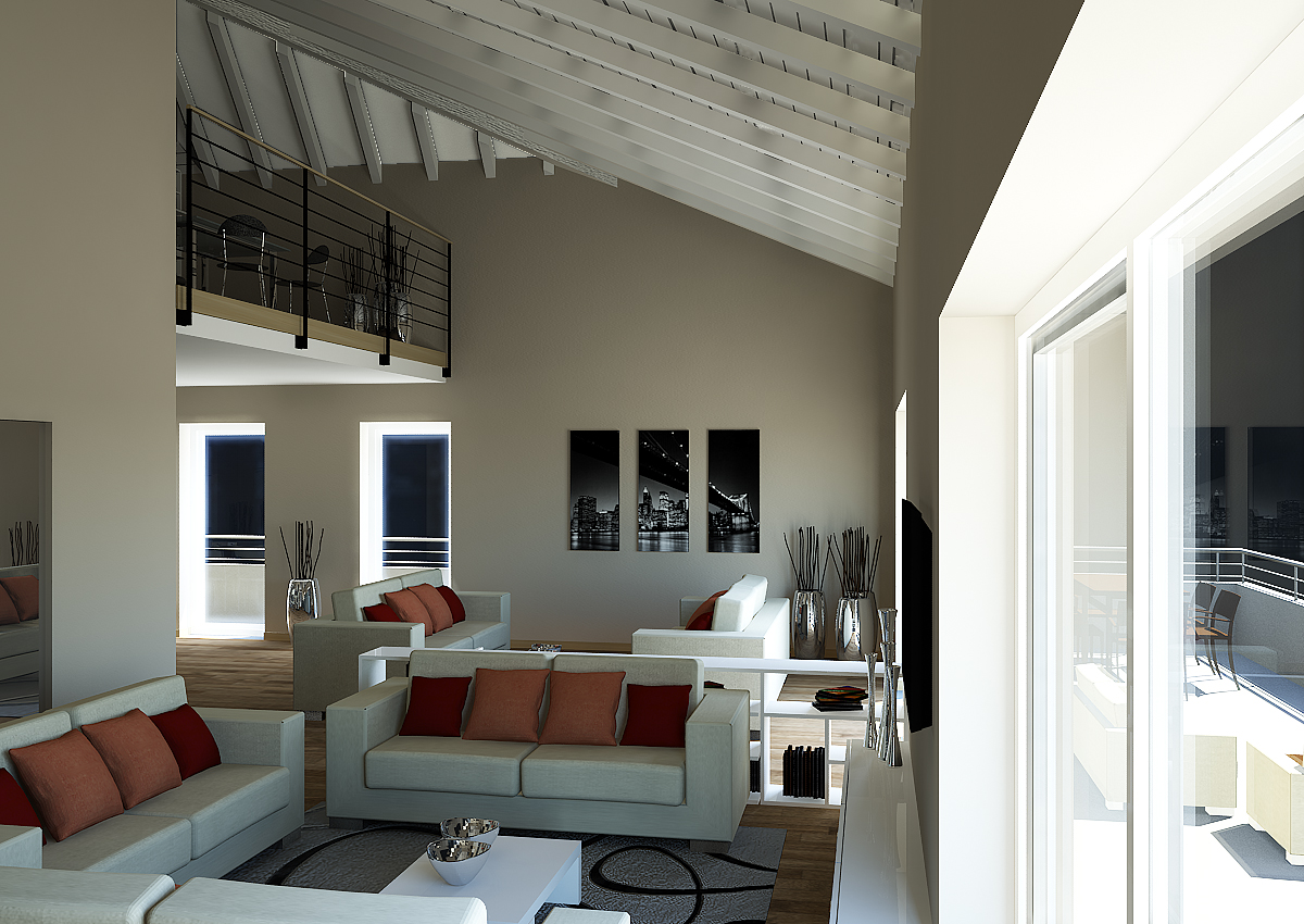 alloggi dei piani primo e secondo, mentre per l'attico oltre alla zona giorno sono stati realizzati i rendering del soppalco e della camera da letto.