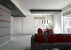Gli interventi minimal per la realizzazione del soggiorno-pranzo di una villetta di due piani, consistono principalmente nella realizzazione di velette e abbassamenti